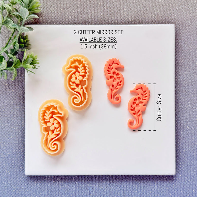 Nordic Floral Seahorse Polymer Clay Cutter - Folk Art Sea Life Silhouette